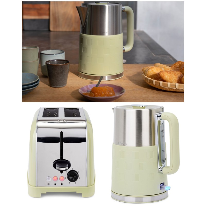 copy of Pack déjeuner - Bouilloire électrique Inox verte 1,7L 2200W + Grille-pain Inox 850W - 7 niveaux de température