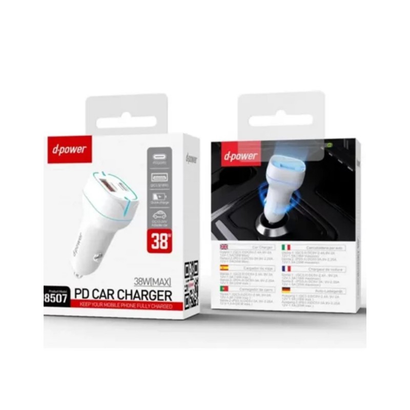 Chargeur de Voiture 2.4 A 2 sorties USB-A + TYPE C Blanc