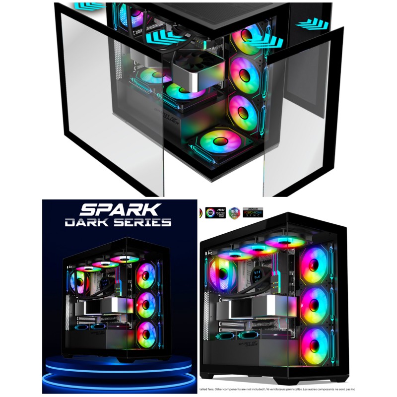BOITIER PC GAMER SPARK DARK ARGB EDITION RGB ATX, mATX et ITX avec 9 ventilateurs inclus SPIRIT OF GAMER