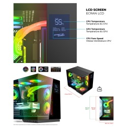 Boîtier PC Gamer - SPIRIT OF GAMER - VIPER CRX DARK - Écran LCD - Refroidissement ARGB - Design en verre trempé