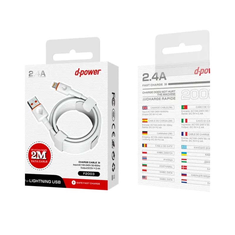 Câble Lightning Mâle à 8 Broches 2.0 m Blanc 2.0A DATA