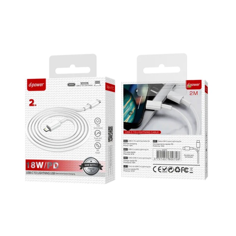 Câble Lightning Mâle à 8 Broches vers USB-C 2.0 m Blanc 3.0A
