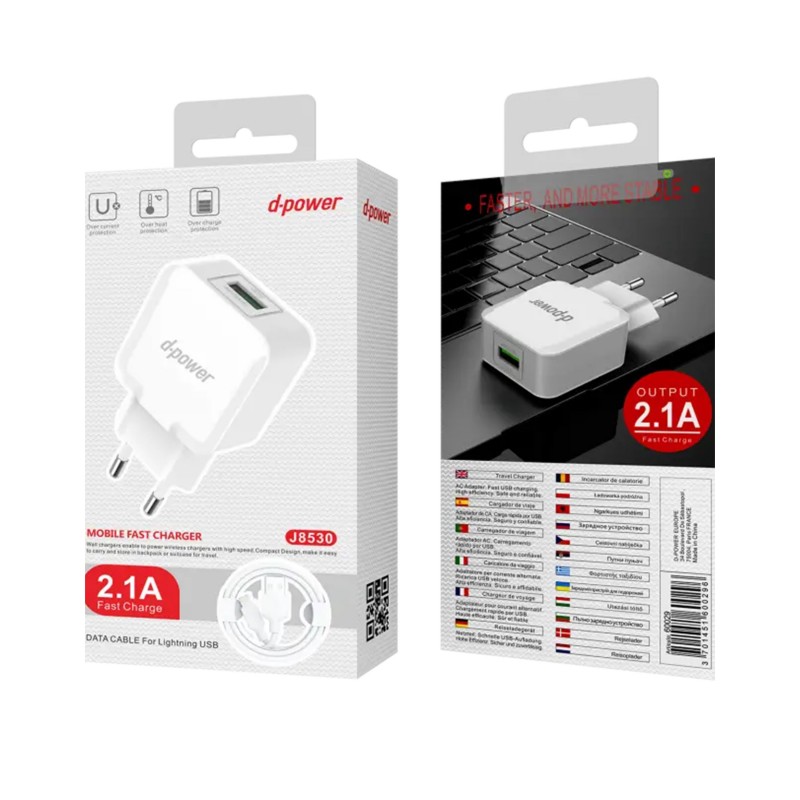 Chargeur Mural 2.1A 1 sortie + Câble Lightning 1.0m Blanc