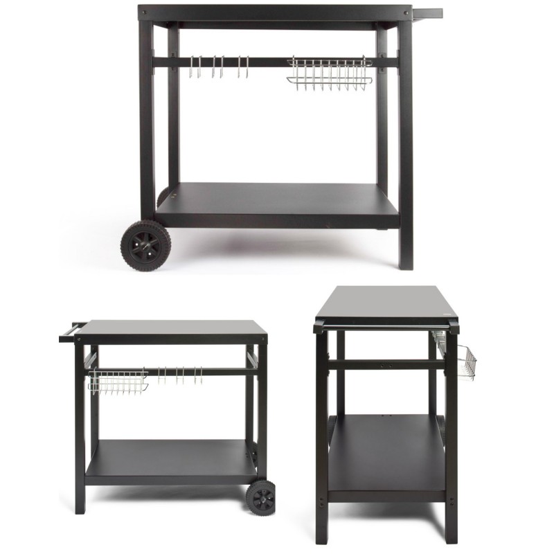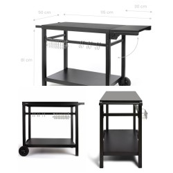 copy of Desserte - Inox - 85 x 50 cm - 4 roulettes avec freins - Plateau en bois - Pour plancha 2/3 brûleurs