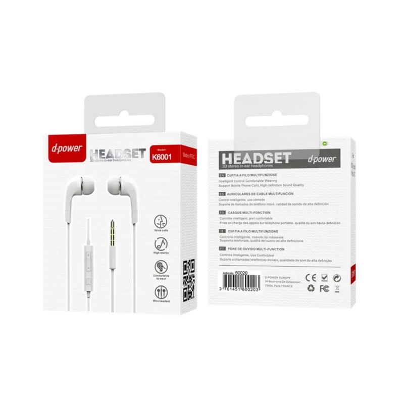 Ecouteurs stéréo Audio intra-auriculaire 3.5mm 1.20m - Blanc
