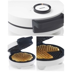 Gaufrier Électrique Blanc - 1000W - Revêtement Antiadhésif - Gaufres en forme de cœur - Poignée Isolante