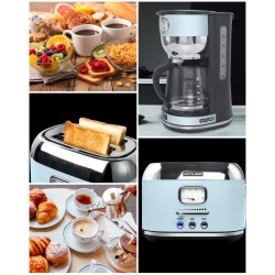 Bouilloire Bleu pastel Rétro Vintage 2200W + GRILLE-PAIN RETRO VINTAGE bleu DESIGN 2 TRANCHES 1000W COULEUR Bleu pastel
