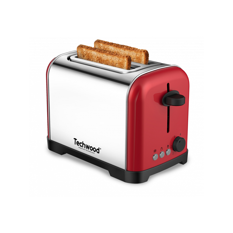 Grille Pain Rouge Inox Brossé 700W 2 larges FENTES