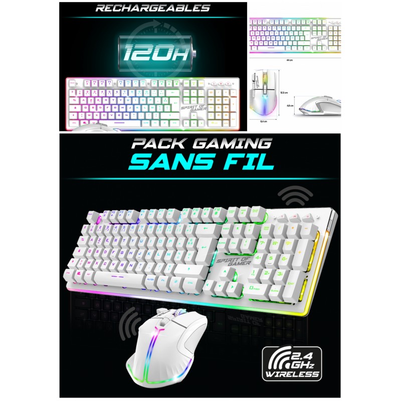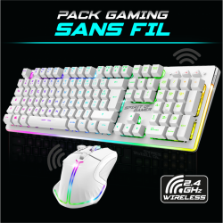 Pack Clavier + SOURIS Blanc Sans fil Wireless RGB PRO + SOURIS sans fil + CLAVIER semi mécanique sans fil 4800DPI