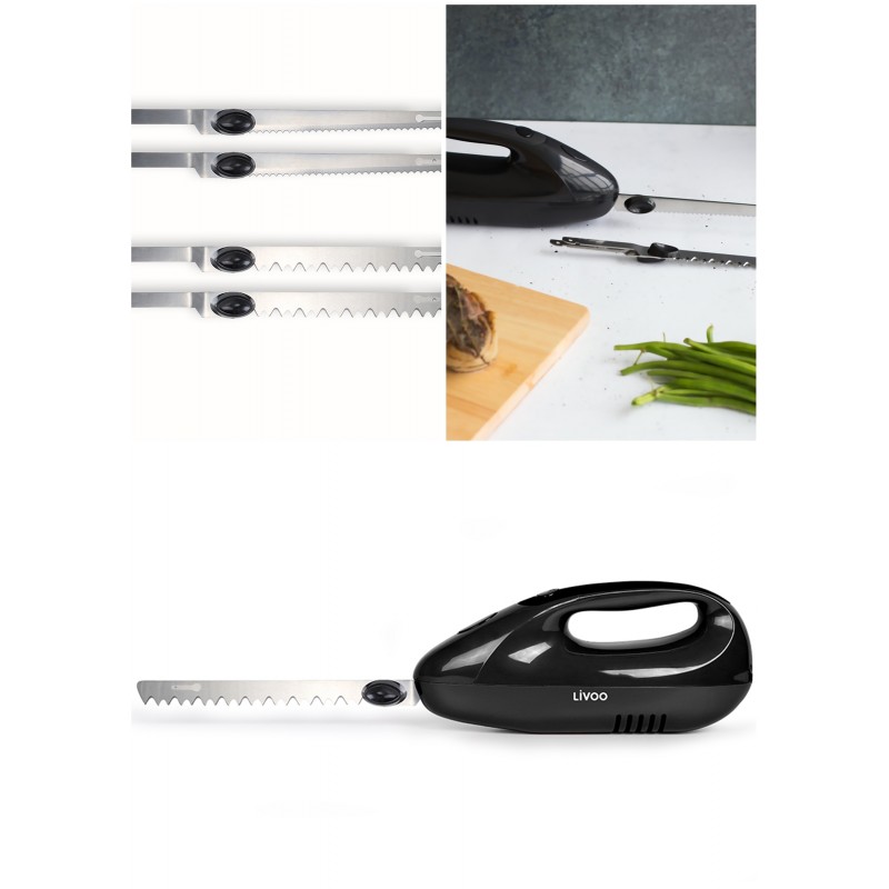 Couteau électrique Noir avec 2 jeux lames acier inoxydable Poignée ergonomique
