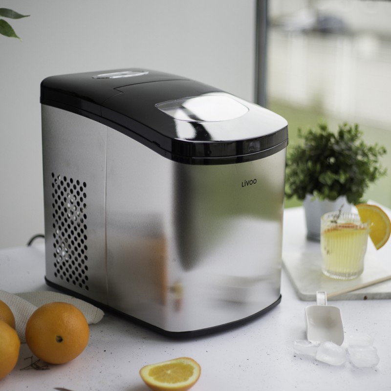 Machine à glaçons INOX 10kg Réservoir 1.7L 150W - Bac amovible - Nettoyage automatique Cycle Voyant de niveau d'eau faible