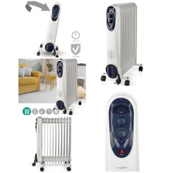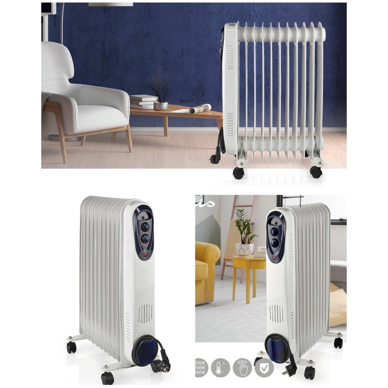 Radiateur à bain d'huile 2500W 11 colonnes, 3 réglages de chaleur, Thermostat réglable– Blanc 3 réglages de chaleur