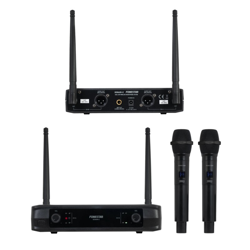 Microphone sans fil double à main PRO UHF processeur audio DSP DJ PARTY KARAOKE 2 CANAUX Sortie symétrique et asymétrique