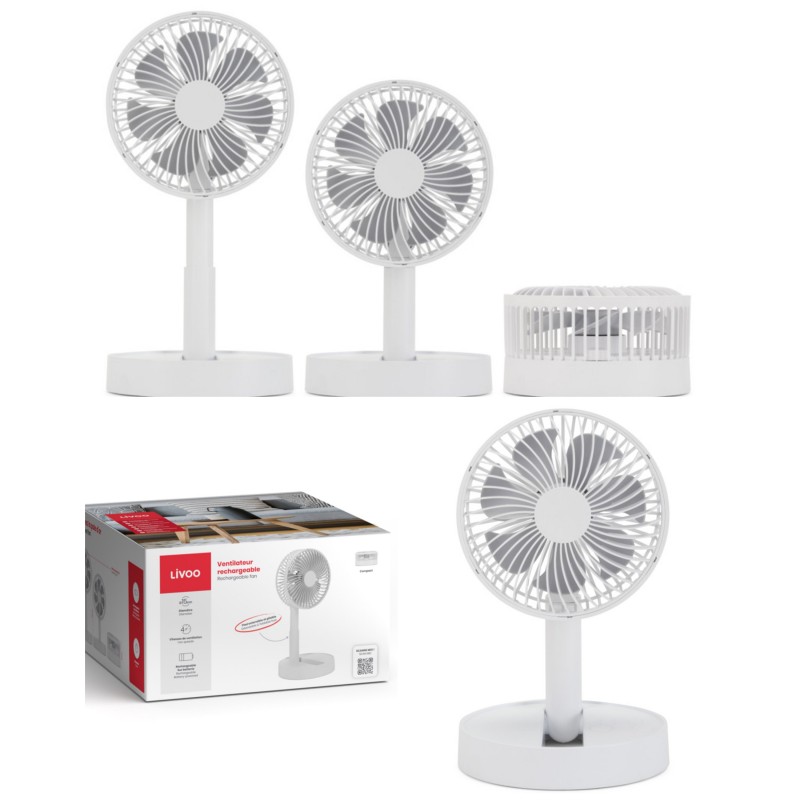 Ventilateur Blanc de bureau pliable et rechargeable sans fil sur batterie