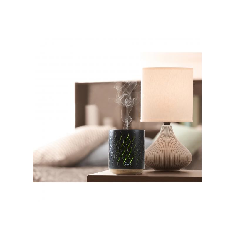 Aromathérapie à base d’huiles essentielles (non fournies). Apaise le corps et l’esprit pour une douce sensation de détente et de bien-être Réservoir d’eau de +/- 200 ml Arrêt automatique quand le réservoir d’eau est vide Base en imitation de bois