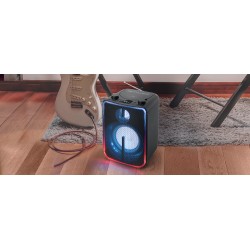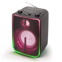 Véritable système tout-en-un, l'enceinte Party Box Muse M-1802 DJ comblera les envies de tous les utilisateurs. Les 60 Watts apportent la puissance nécessaire pour vous faire entendre ou pour diffuser idéalement votre musique. Parmi les possibilités, reliez un appareil mobile via Bluetooth, connectez une clé USB pour la lecture de fichiers MP3 ou parcourez la bande FM à la recherche de votre station préférée ! En outre, ce modèle dispose d'une entrée auxiliaire pour la liaison filaire avec un autre appareil et d'une prise Jack pour brancher un micro ou une guitare. Facile à transporter, l'enceinte M-1802 DJ suivra vos besoins ou projets avec une belle autonomie. Enfin, l'éclairage lumineux ajoute une touche festive très agréable.