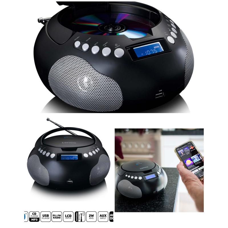 Ce lecteur radio CD est léger et offre un son riche grâce à ses haut-parleurs stéréo intégrés.