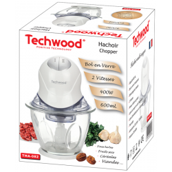 Mini Hachoir BLANC Bol en verre 600 ML - 300W 2 Vitesses