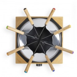 Appareil à Fondue 8 Personnes BOIS Contrôle de température réglable 1500W fond antidérapant protection contre la surchauffe