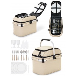 Panier pique-nique 4 personnes en Toile BEIGE isotherme 23L 29 Accessoires Poignée rétractable