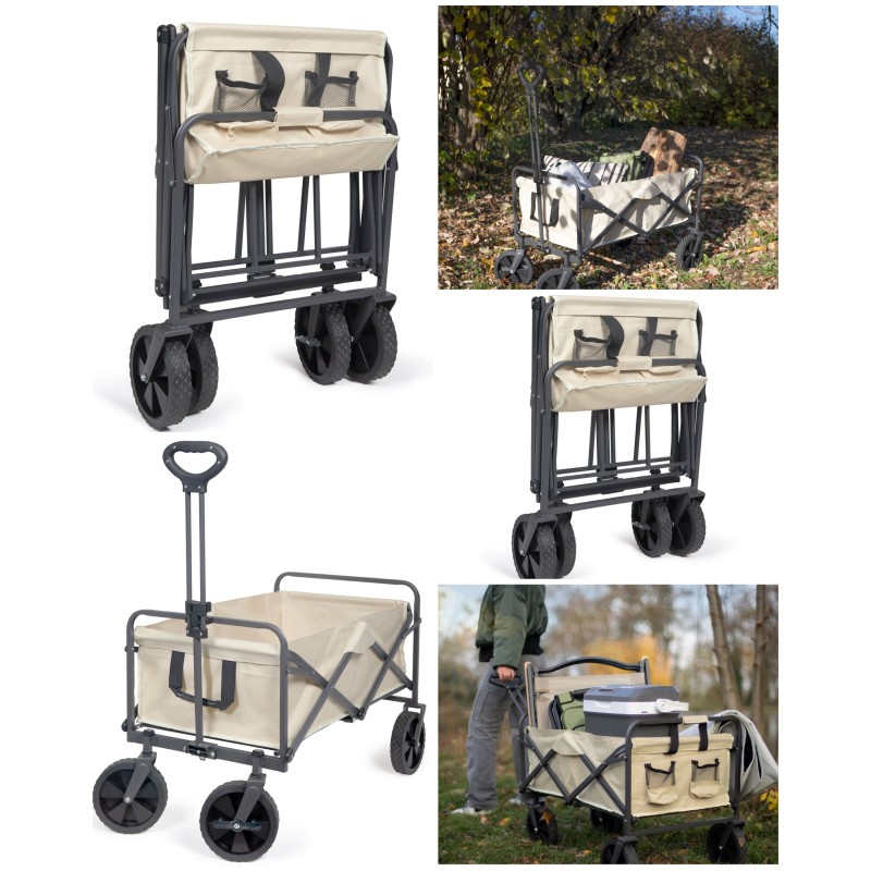 Conçu en acier thermolaqué, résistant à la rouille et à la corrosion, et tissus en polyester 600D robuste * Grande capacité de 89 L capable de supporter jusqu’à 120 kg, idéal pour toute la famille et toutes les activités de plein air (plage, camping, festivals, pique