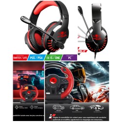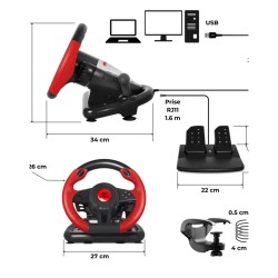 CASQUE PC + Volant et pédales de jeu Vidéo Race Pro Wheel 1 compatible WINDOWS 11/ PC SPIRIT