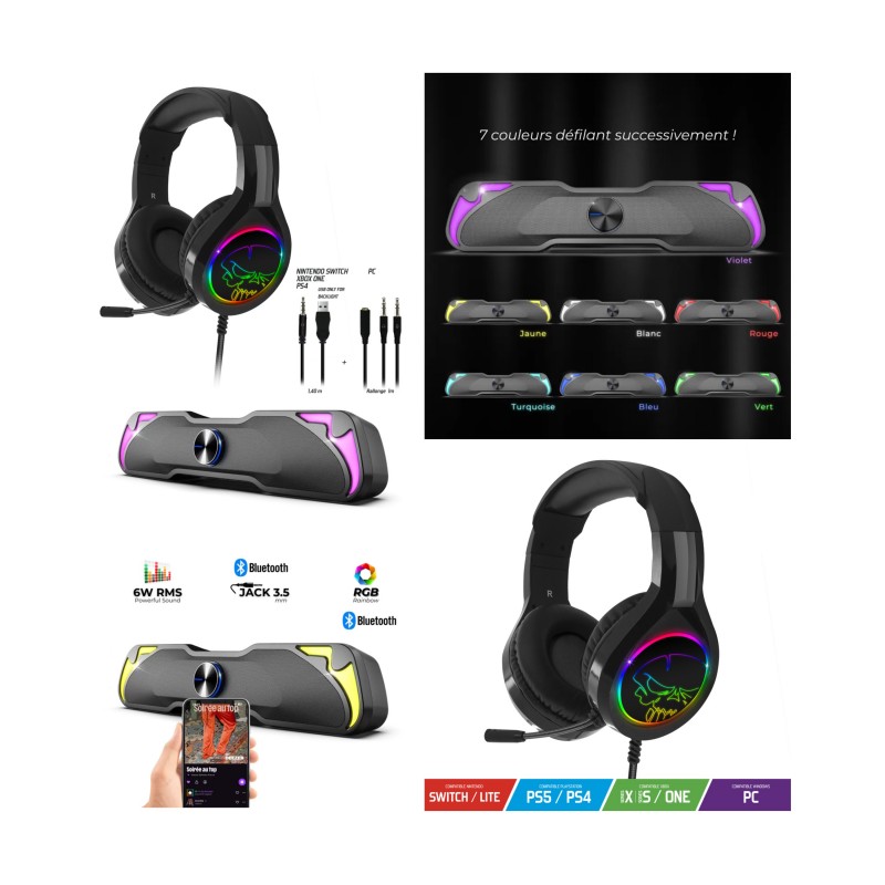 ENCEINTES 2.1 SOUNDPHONIC RGB 11W RMS Bluetooth 5.0 rétro-éclairage RGB + Casque PRO Gamer PC multiplateformes
