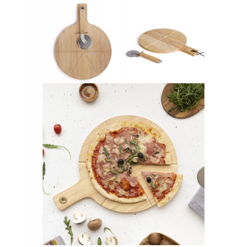 planche à découper pour PIZZA en bois + Roulette