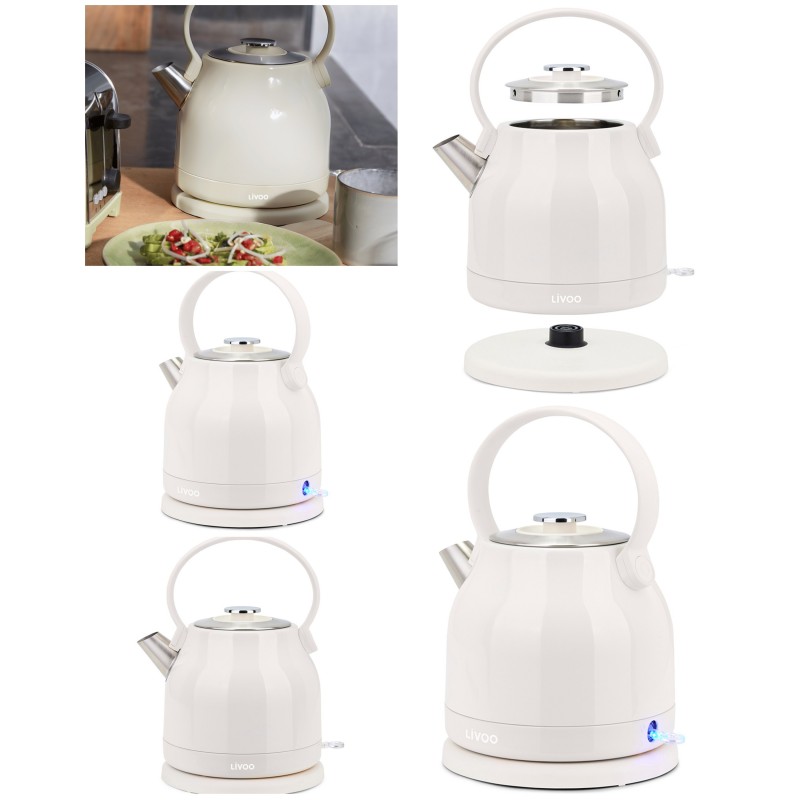 Bouilloire Inox rétro 1,5L CREME INOX Sans Fil 2200W Arrêt automatique INOX