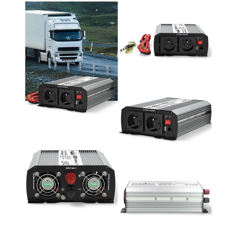 Convertisseur de tension 24 V DC modifiée onde sinusoïdale USB-A 230 V AC 50 Hz 1000W Puissance de sortie maximale 2000 W
