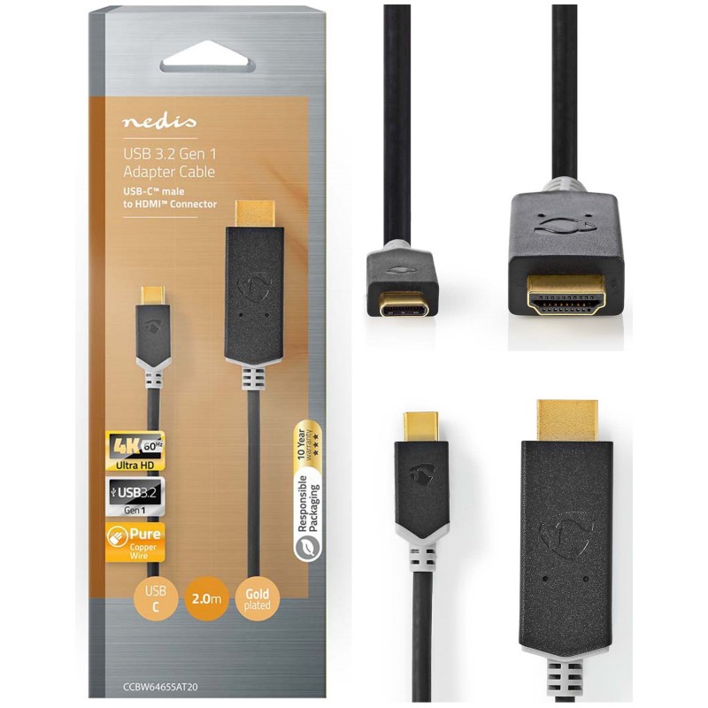 Cordon USB-C 3.2 Gen 1 USB-C™ Mâle HDMI™ Connecteur 4K 60Hz 1.00 m Rond Plaqué