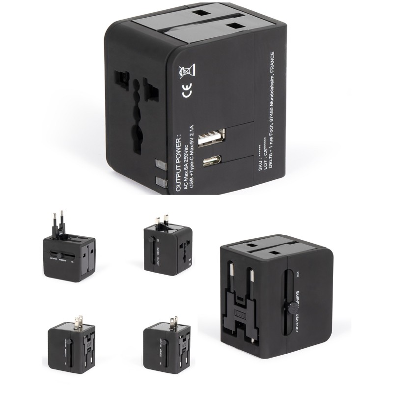 Adaptateur de voyage universel 1500W UK/US/EU/AU + chargeur USB