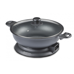 Wok électrique Noir 1400W Revêtement antiadhésif Contenance 3.6 L Thermostat Réglable
