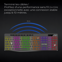 Clavier sans fil NOIR RF 2.4GHz LEDS RGB Compatible MAC Windows AZERTY IPX4 ETANCHE