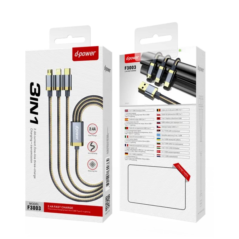 Câble 3in1 1m IPHONE-TYPEC C-MICRO-USB