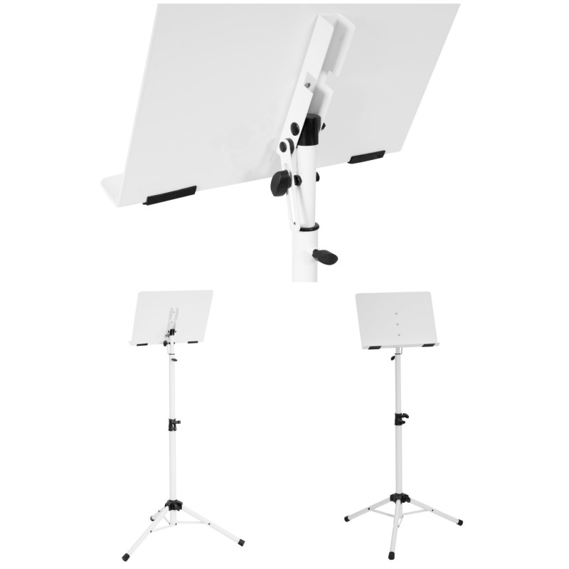 Pupitre blanc à plaque en acier inclinable, hauteur 60-105 cm