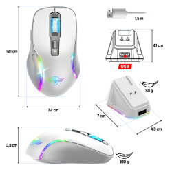 ELITE M50 se distingue par ses 6 boutons programmables, offrant une personnalisation complète grâce à son éditeur de Macro intégré. Son accélération de 10 G, une vitesse de 30 ips et une fréquence de 500 Hz garantissent des performances réactives, tandis que son rétro-éclairage RGB à 16.8 millions de couleurs et ses 7 effets dynamiques ajoutent une touche esthétique unique. Le design ergonomique spécialement conçu pour les droitiers offre un confort optimal, complété par une autonomie impressionnante de 90 heures (sans RGB) et un temps de charge rapide de 3 heures.