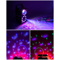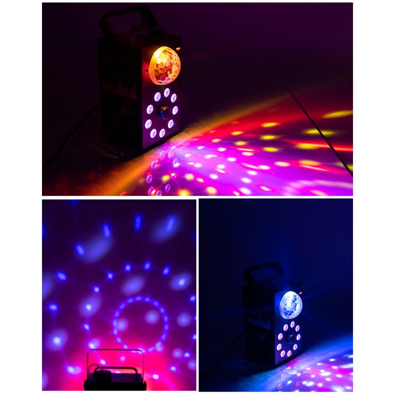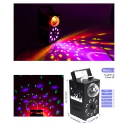 Machine à fumée astucieuse qui éclaire la fumée avec ses 9 LED RGB 3-en-1. En même temps, l’effet Astro envoie de nombreux rayons et points lumineux qui sont rendus visibles par la fumée.