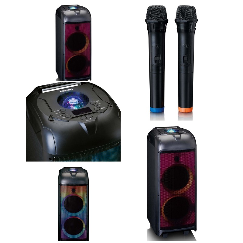 • Inclus: une télécommande, Adaptateur secteur et un microphone sans fil x 2