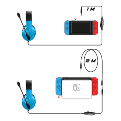 WORKS WITH NINTENDO Le casque se branche directement sur la prise jack 3.5 mm de votre console. Son câble d’un mètre est suffisamment long pour vous offrir une grande liberté d’utilisation en mode portable et encore plus avec sa rallonge de 2 mètre pour utilisation en mode téléviseur ou sur table. Casque compatible Switch modèle OLED, Switch et Switch Lite