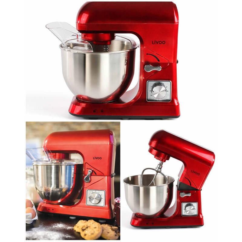 Robot Pâtissier Rouge 1000W - Bol inox 5L - 6 vitesses - Fonction pulse- 3 outils