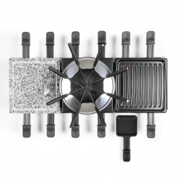 Appareil à fondue électrique 12 Personnes + Appareil à raclette 1650W 12 caquelons avec revêtement antiadhésif