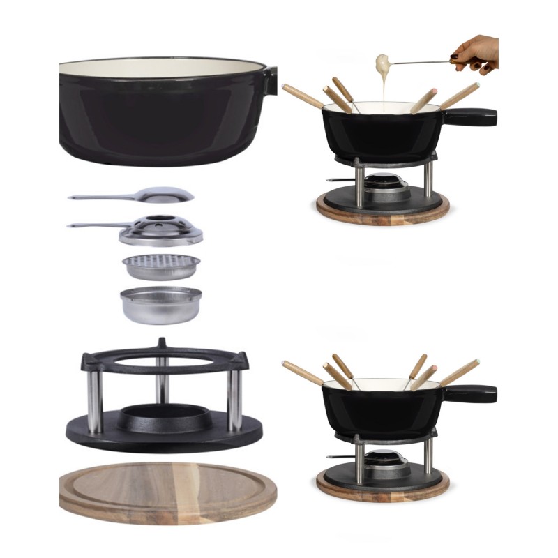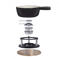 Appareil à fondue électrique Noir avec bol en céramique de 2,6L Support en acier inoxydable avec plaque chauffante en aluminium