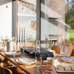 Idéale pour 12 personnes grâce à sa grande surface de cuisson et aux 12 spatules et caquelons inclus