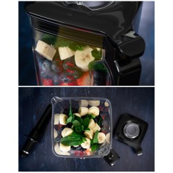 • Couvercle avec trou d'égouttage pour faciliter l'ajout d'ingrédients pendant le mixage