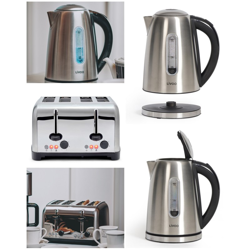 Bouilloire Inox automatique - 1,7 L - 2200 W - Grille-pain Inox 4 fentes