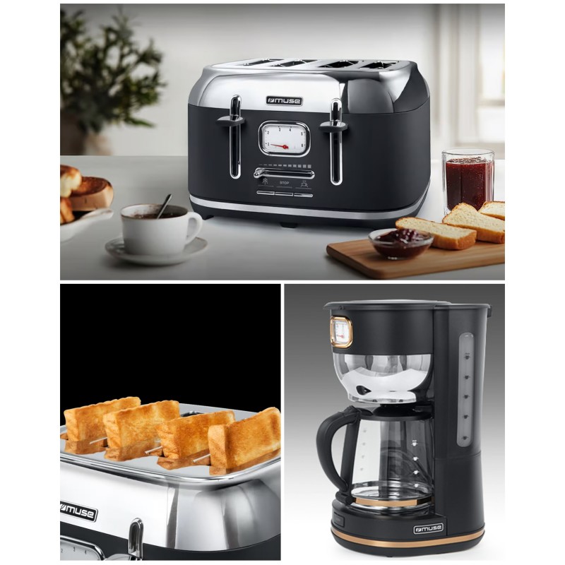 Cafetière Vintage 1.4 L 10 à 12 tasses 1000W - GRILLE-PAIN RETRO 4 TRANCHES 1800W - Bouilloire Vintage 1.7L - 2200W - Sans fil