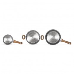 1 casserole avec couvercle Ø 16 x 7 cm, 1 poêle Ø 24 x 5 cm et 1 faitout avec couvercle Ø 24 x 10 cm