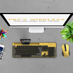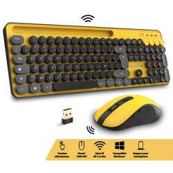 Pack Premium Clavier sans fil + SOURIS sans fil optique Wireless Desktop ADVANCE nano récepteur USB JAUNE ET NOIR