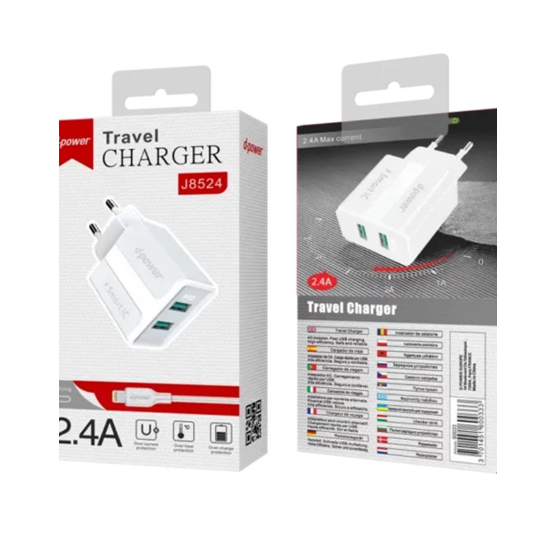 Chargeur Mural 2.4A 1 sortie + Câble Lightning 1.0m Blanc